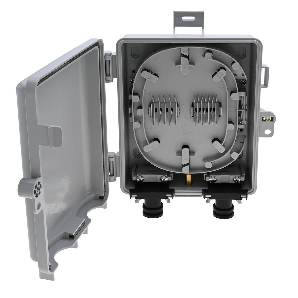 The LYNN Outdoor Compact Fiber Optic NID (FPP‑6S‑W‑15) is a durable, wall-mounted fiber distribution enclosure designed for FTTx applications. Constructed from UV‑ and water-resistant high-impact ABS/PVC plastic, it withstands harsh outdoor environments while offering a polished, gloss-grey finish that suits residential or commercial installations. The compact housing supports up to six simplex SC or LC couplers and allows for splice-based or adapter-loaded deployment, with internal splice sleeves, slack storage, and separate fiber management zones under a non-interfering door. Supplied with wall anchors, screws, and six splice sleeves, the enclosure streamlines mounting, fiber organization, and future servicing—all in one sleek, reliable package.